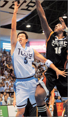 TGは7日、原州(ウォンジュ)の雉岳(チアク)体育館で行われた2004〜2005アニコール杯プロバスケットボールの正規リーグで、電子ランドを88−62の大差で破った。