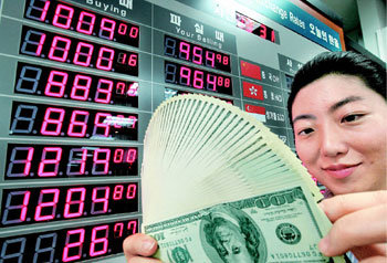 달러당 원화 환율이 모처럼 크게 오른 13일 인천국제공항 내 한 은행 환전창구에서 여직원이 달러화를 세고 있다. 이날 원-달러 환율은 전날보다 13.8원 오른 987.8원으로 거래를 마쳤다.