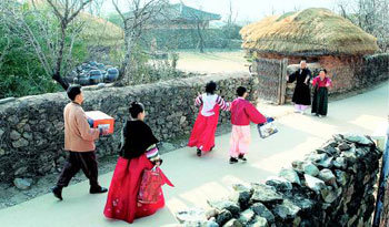 「まあまあ、よく来たね」。孫たちの姿が見えると、おじいさんとおばあさんが両腕を広げました。きれいな韓服(チマ・チョゴリ)を着た子供たちが嬉しそうに駆け寄ります。27日、全羅南道順天楽安邑城(チョンラナムド・スンチョン・ナクアンウプソン)を訪れた夫婦は、両親にあげるお土産を持って行きます。皆集まって楽しい時間を過ごすことでしょう。孫たちは、お年玉をいくらもらえるかのほうが、気になるかもしれません。