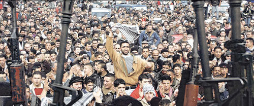 28日、パレスチナ最大政派であるパタ党支持者たちが、「パタ党中央委員会委員たちは総選挙敗北の責任を負って辞任しろ」とデモを行った。パタ党の武装組織であるアル・アクサ殉教旅団隊員たちが銃を持ってデモ隊を阻止している。