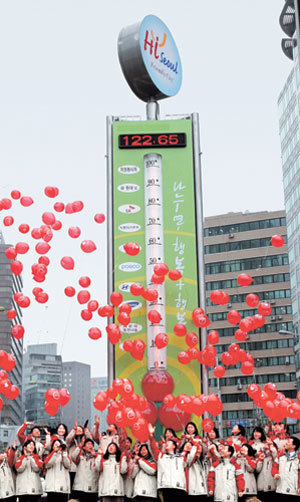 悪性脳腫瘍と死闘をして死亡した12歳の少女の貯金箱から出たコインと、洞事務所の入り口でスンデ(豚の腸詰め)を売る露天商の1日の売り上げなどをもとに、約1500億ウォンが貯まった。31日、ソウル広場に立てられた愛の体感温度塔の前で、2ヵ月間続けられた「希望の2006隣人への愛のキャンペーン」の終了を祝って、社会福祉共同募金会のメンバーらが風船を飛ばした。