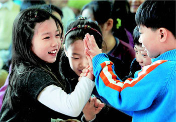 久しぶりに会った友達がどれくらい背が伸びたのか気になる模様だ。1日、ソウル市内で最初に新学期が始まった鍾路区(チョンログ)の雲峴(ウンヒョン)小学校の児童たちが、講堂で始業式を待ちながら、お互いに手の大きさを測り合っている。どんぐりの背比べという言葉が思い出される光景だ。
