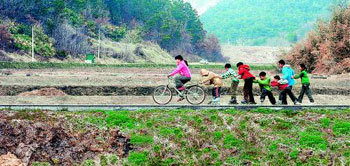 6日は24節季の一つである啓蟄だ。草木の芽が生え、地下で冬眠していた蛙が目を覚まし、新たな生活を開始するときだ。全羅道・慶尚道(チョルラト・キョンサンド)地域では、畑を耕す風景をどこでも見かけると言って、啓蟄に前後にした時期を「九九耕牛期」と呼んでいる。啓蟄の前日である5日、全羅南道咸平郡羅山面(チョルラナムド・ハムピョングン・ナサンミョン)でインラインスケートを履いたまま自転車に乗って青々とした新芽の生えた農道を走る子供たちの姿がさわやかだ。