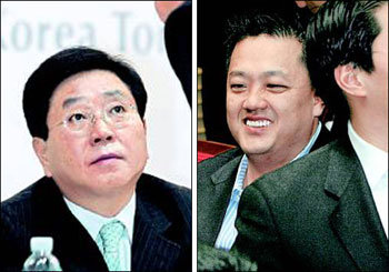 17日、大田市大徳区坪村洞(テジョンシ、テドクク、ピョンチョンドン)のKT&Gの本社で開かれた株主総会。投票結果を待つ郭泳均(クァク・ヨンギュン)社長は(左)は、深刻な表情で社員の報告を受けた。一方、アイカン側のオム・ジュンホ・スティールパートナーズ韓国代表は、投票が終わった後、結果に満足したように笑みを浮かべた。