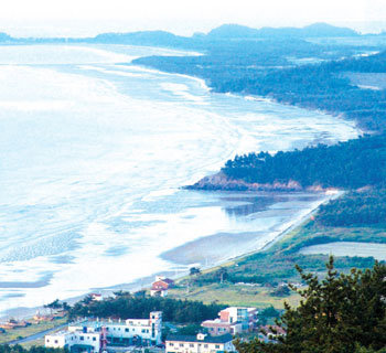 そんな砂島だから、浜辺が素晴らしいのは当然だ。大きい海に面した島の西北の方の海岸には、素敵な砂丘が12キロも続いている。国内最長の浜辺として知られる「テグァン海水浴場」だ。半月模様の砂浜は長さも長い。端まで歩くのに3時間もかかる。