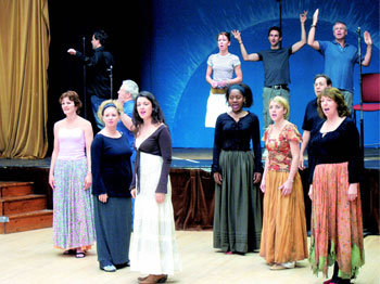 ▲5年間の準備の末、ショーケース公開〓「この夜、山が燃え上がる/また、一本の木が死んでいく/山が燃え上がる、この夜…」(「森のコーラス」)。「男が要るよ/私のそばで横になる男/誰かが要るよ…」(「男が要る」)。