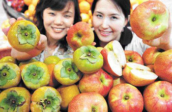 ソウル中区小公洞(チュング・ソゴンドン)のロッテ百貨店本店は21日、もぎたてのリンゴと甘柿の販売を始めた。全羅北道(チョンラブクド)産リンゴは1個当たり4500ウォン、済州(チェジュ)産甘柿は2500ウォンで販売する。