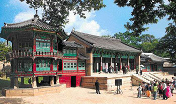景福宮(キョンボクグン)北門「神武門(シンムムン)」とともに公開されたパルウジョン、集玉齋(ジプオクジェ)、ヒョブギルダン(左側から)。ここは、高宗(コジョン)が外国の使臣を迎えたり書斎で使ったりしたところだ。45年ぶりに公開されると、市民たちが珍しそうに観覧している。