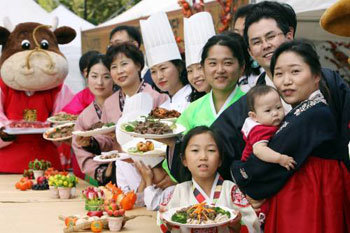 韓牛(韓国牛)自助金管理委員会はロッテデパートと共同で、1日、ソウル松坡区(ソンパグ)にあるロッテデパート蠶室(チャンシル)店で、「秋夕(チュソク=旧暦のお盆)大家族韓国牛料理コンテスト」を開いた。チマ・チョゴリ姿の大会参加者たちが韓国牛で作った数々の料理を披露している。