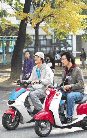 大学生のスクーター族が増えている。2日、延世(ヨンセ)大学で会ったある学生は、「講義室への移動が早くなる上、1リットルで40キロメートルまで運行が可能なため、市内での移動も公共交通機関より安上がりだ」と話した。