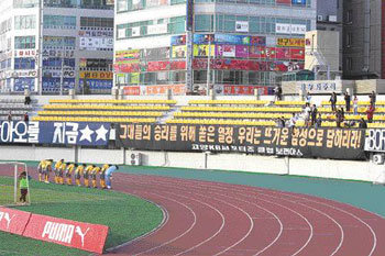 両チームのサポーターズ20人あまりと市の関係者、団体観覧に来た小中高校生を除いた純粋な観衆は数十人水準。次のシーズンから、二つのチームの中一つのチームと競技を行わなければならないKリーグ監督の中では、スイス出身の釜山(プサン)アイパークのエンデ−・エグリ監督が唯一だった。