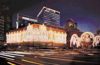 ソウル中区忠武路(チュング・チュンムロ)の新世界(シンセゲ)デパート本店が、30日、光の芸術と呼ばれる大型「ルミナリエ」で飾った。幅100メートル、高さ25メートル規模のこのルミナリエは、20万個の電球で作られている。デパート側は、来年2月まで、ルミナリエを展示する予定だと明らかにした。