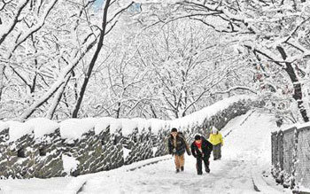 16日夜から降り始めた雪で、南山(ナムサン)頂上への登山路が白い雪で覆われた。今年に入って一番多く降った雪だ。17日一日で、大関嶺(デクァンリョン)31.2センチ、ソウル12.8センチなどの大雪が積もって、気温も氷点下に下がった。そのため、18日朝、ソウル、京畿(キョンギ)、忠青(チュンチョン)地域の道路が凍結して、交通渋滞が懸念される。