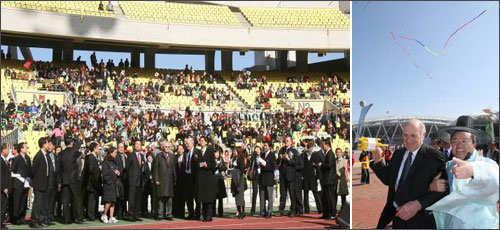 審査が行われる間、競技場には約5000人の子供が参加した「子供陸上大会」が開かれ、近くの広場では農楽隊のプンムル公演をはじめ伝統の凧揚げ大会、パラグライダーショーなどが華麗に行われた。