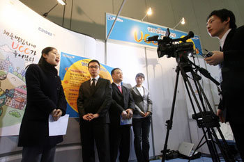 12日、京畿道高陽市(キョンギド・コヤンシ)の韓国国際展示場で開かれた「2007上半期就職フェア」。同日の就職博覧会の会場には、ユーザー製作コンテンツ(UCC)を利用した「UCC履歴書」の撮影館が設置され、ニューメディアに長けた若い求職者の足が絶えなかった。