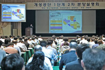 中国の賃金上昇などで開城(ケソン)工業団地に関心を示している中小企業が増えている。4日、ソウル汝矣島(ヨイド)の中小企業中央会館で開かれた「開城工団分譲説明会」に参加した300人あまりの中小企業関係者が、中小企業中央会の開城工団分譲説明会を聞いている。(提供=中小企業中央会)