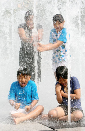 「水遊びは気持ちいい」。全国的に初夏の暑さだった22日、ソウル城東区聖水洞(ソンドンク・ソンスドン)の「ソウルの森」を訪れた子どもたちが、噴水で水遊びをし、暑さを吹き飛ばしている。キャノンEOS—1D Mark ⅡN、EF 70—200mmレンズ、ISO800、1/400、f14。