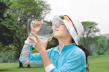 その奥深い帽子の中に隠された2つの目からとめどもなく涙があふれた。泣きすぎたせいで、仲間の韓国人選手たちがお祝いのために水やジュースをかけ、しぶきが飛び散るのも知らぬまま立っていたから、体がびしょ濡れになった。初優勝はそれほど深い感激をもたらした。米女子プロゴルフ(LPGA)ツアー、デビュー5年で初勝利を収めた金英(キム・ヨン、27)。彼女は28日、米ニューヨーク州コーニングCC(パー72)で閉幕したコーニングクラシックで、合計20アンダー268で優勝した。国内大会では5勝を挙げたが、LPGAツアーでは103大会を経て味わった幸福な「初体験」だった。