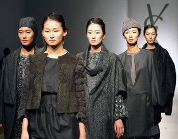 21日ソウル龍山区漢南洞(ヨンサング・ハンナムドン)のグランドハイアットホテルで開かれた「イヴサンローラン2007F/Wファッションショー」で、モデルたちが今秋冬に流行する衣装を披露。デザイナーのステファノ・ピラティ氏は「多様なブラックカラー系統の色を活用し、現代的な感覚のイヴサンローランスタイルを具現化した」と説明した。