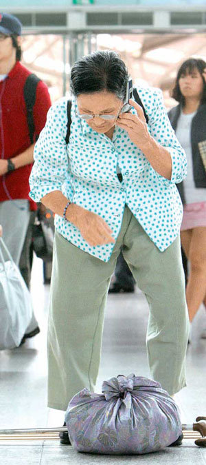 秋夕(チュソク、陰暦8月15日の節句)の連休を控えた21日、ソウルに住んでいる子どものところを訪ねるため、列車に乗って「逆帰省」したあるお婆さんが、ソウル駅に到着して迎えにきてくれることになっている家族に携帯電話をかけている。最近、混雑な帰省を避けるため、逆帰省が増えて、同日、高速道路を通じてソウルへ入ってきた車両も普段より1万台ぐらい増えた35万台だった。
