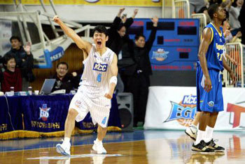 プロバスケットボールのKCCが三星(サムスン)に1点リードされていた試合終了2.1秒前。KCCのチュ・スンギュンが、昨季まで10年近く同じ釜の飯を食って別れた三星の李サンミンのマークをかわして、左側45度の地点から放ったシュートがリングに吸い込まれた。KCCが競技場を埋め尽くした約5600人のホームファンを熱狂させ、劇的な逆転勝ちを決定付けた瞬間だった。