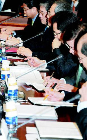 韓米同盟強化を強調して来た李明博(イ・ミョンバク)大統領が11日、外交通商部(外交部)を直接訪れ、業務報告を受けた。実用外交を強調した李大統領の冒頭発言を、外交部幹部たちがメモをしながら必死に耳を傾けている。