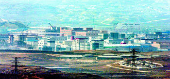 北朝鮮が27日、金夏中(キム・ハジュン)統一部長官の発言を問題視し、開城(ケソン)工業団地内の南北経済協力協議事務所に常在していた韓国側の関係者11人の撤収を要求してきたことから、同日、駐在員たちが韓国へ引き上げた。27日、ドラ山の展望台から眺めた開城工業団地。