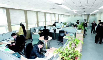 大統領府は先月、現代カードのオフィスをモデルにして、秘書棟(与民館)の秘書官室・事務室(右上)の壁をガラス張りに変え、間仕切りも大人のひじぐらいの高さ(約1.1メートル)に下げた。李明博(イ・ミョンバク)大統領は、秘書官室内を一回りしながら「こうしてこそ、お互いのコミュニケーションもうまくいくし、効率的だ」と話した。