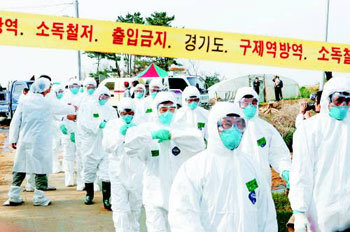 政府の総力戦にもかかわらず、高病原性鳥インフルエンザ(AI)がさらに拡散している。15日、京畿道平澤市(キョンギド・ピョンテクシ)ポスン邑ソクジョン里のある農家で鶏の死骸からAIウイルスが確認され、防疫服を着た公務員たちが養鶏農家の鶏を屠殺処分するために農家に移動している。