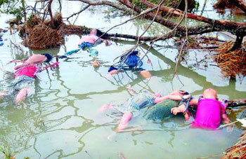 ミャンマーのある週刊誌編集長が9日、東亜(トンア)日報に送った写真だ。軍事政権の統制でその間外部に公開されなかったサイクロン「ナルギス」が残した惨事を赤裸々に見せている。子どもたちは急に増した水に流されないようにお互いの腕をロープで縛ったりしたが、結局災いを免れなかった。まだ遺体収拾もできていないほど復旧が遅れているが、ミャンマー政府は、政権維持のために国の扉を固く閉めたまま、国際社会からの支援さえ拒んでいる。