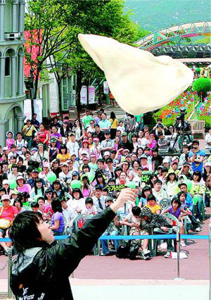 25日、京畿道果川市(キョンギド・クァチョンシ)のソウルランドで、ピザ芸大会が開かれた。ピザ業者であるミスターピザが開催した同大会には、全国320あまりのチェーン店で働く職員たちが出場し、手打ちピザの芸を披露した。