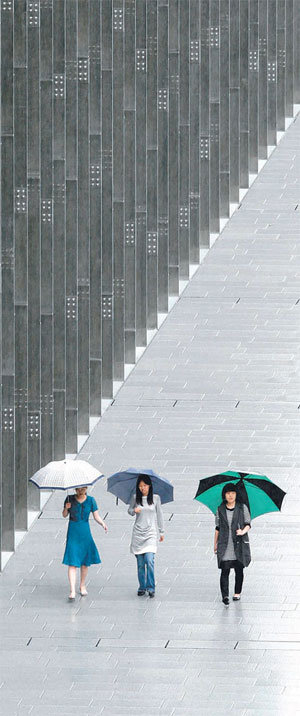 全国的に本格的な梅雨が始まった。気象庁は19日未明から雨が止むが、週末の21日からは、再び全国的に雨が降ると予報している。18日、雨が降る梨花(イファ)女子大の校庭を学生らが歩いている。