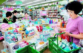 右肩上がりで続く物価上昇で1000ウォン前後で買い物ができる低価商品ショップが人気を集めている。7日ソウル江南区論峴洞(カンナムグ・ノンヒョンドン)にある1000ウォンショップのチェーン店「ダイソー」で買い物をしている客たち。