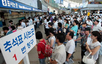 추석연휴 철도승차권 예매가 시작된 9일 서울역 매표소 앞에는 많은 시민이 몰렸다. 10일에는 호남 전라 장항 태백 영동 경춘선 예매가 실시된다.
