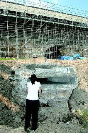 文化財庁が崇礼門(スンレムン、南大門の正式名称)の修復のため、発掘調査を開始する前に、崇礼門の周辺を囲んだ石垣フェンスを解体する過程で発見されたバンカー(地下に設置される軍事用の監視室・高さ2.3m、幅2.1m、長さ3.3m)。同バンカー内部には銃口穴が空いており、軍用の懐中電灯1個とバンカーの管理状態を点検する表示板3個が同時に見つかった。文化財庁は、「韓国戦争以降作られたものと見られ、実測を記録した後、撤去する予定」と説明。