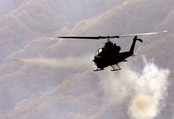 28日、京畿道楊平郡(キョンギト・ヤンピョングン)のピスン射撃場で開かれた陸軍航空射撃大会に参加したAH−1Sコブラ・ヘリコプターがロケットを打ち上げている。