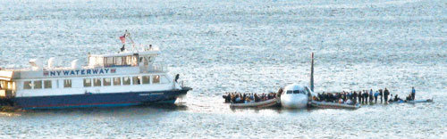 155人の乗客・乗務員を乗せた飛行機が、川に不時着したにも関わらず、搭乗者全員が救助される奇跡のような出来事が起きた。15日、米ニューヨークを出発してノースカロライナ州シャロットへと向かっていたUS航空所属のエアーバスA320型機が、鳥の群れに突っ込み、エンジンが止まり、ハドソン川に非常着陸した後、搭乗者らが飛行機の翼の上に上って救助船を待っている。ベテラン操縦士の老練で落ち着いた対応と、速やかな救助のおかげで、搭乗者は全員無事だった。