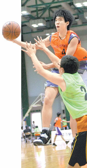 7일 서울 서초구 양재동 교육문화회관 체육관에서 열린 2009 서머 스트리트 바스켓볼 페스티벌 대전 대표와 경남 대표의 중등부 16강 경기. 대전 선수(위)가 경남 선수의 수비를 피해 레이업슛을 시도하고 있다. 이날 참가자들은 프로 선수 뺨치는 개인기를 맘껏 뽐냈다.