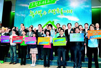 8日、ソウル中区太平路(チュング・テピョンロ)の韓国プレスセンター国際会議場で、「緑色生活実践協約」の締結式が行われた。緑色成長委員会、環境部など政府機関をはじめ、セマウル運動中央会など市民団体、グリーンスタート全国ネットワークや全国経済人連合会など、産業界の代表が一堂に会し、「緑色生活の実践」を呼びかけた。