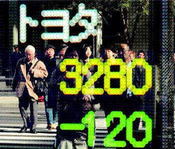日本のトヨタ自動車の株価が、プリウスの悪材料で再び急落した。4日の東京株式市場で、トヨタの株価は前日より3.53%下がった3280円の終値となった。オバマ米政府が4日、トヨタの生産車両の安全性に強く問題提起をし、トヨタの株価は10ヵ月ぶりに最安値を記録した。東京のある証券会社の株価電光掲示板に表示されたトヨタの株価。歩行者の姿が電光掲示板に映っている。