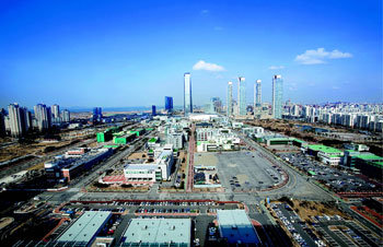 03年に立ち上げた仁川(インチョン)経済自由区域の松都(ソンド)国際都市の全景。仁川経済自由区域は、干潟埋め立てなどにより用地造成など1段階事業を仕上げ、今年から2段階事業を進め、本格的な投資誘致に乗り出す。