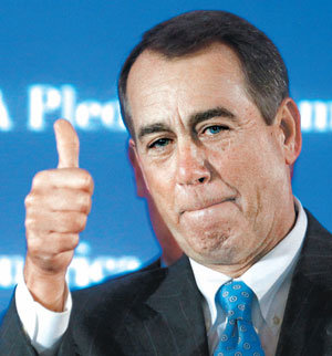2日に行われた米中間選挙で、野党共和党が政権与党民主党に対し、圧勝を収めた。ジョーン・ベイナー共和党下院院内代表は2日夕方、ワシントンの共和党選挙運動本部で支持者らに対し、親指を立てながら、勝利を宣言し、涙を湛えている。共和党が下院を掌握することになり、ベイナー代表は今後、下院議長職を引き受けることになる。
