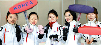 1月初め、泰陵(テルン)リンクで会ったときのカーリング女子代表選手たち。厳しいトレーニングの中でも笑みを忘れなかった彼女たちが、カナダ・レスブリッジで開かれた世界選手権で、奇跡的に4強入りを果たした。左から、イ・スルビ、スキッパーのキム・ジソン、シン・ミソン、イ・ヒョンジョン、キム・ウンジ。