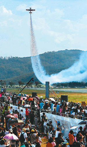 大韓民国の空軍飛行チームであるブラックイーグル所属の飛行機が、アジア最大の航空ショーである「2012京畿道(キョンギド)安山(アンサン)航空ショーで、地上に急降下し、再び空に飛び上がった。3日、京畿道安山市常緑区(サンロクク)から始まった今回のイベントは7日まで続く。