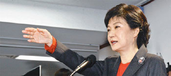 セヌリ党の朴槿恵(パク・グンヘ)大統領選候補が21日、ソウル汝矣島(ヨイド)の党本部で正修(チョンス)奨学会に関連した立場を発表した後、記者らの質問に答えている。