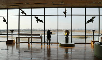 猛禽類を象って作ったステッカーをバードセーバーという。9日、釜山市沙下区乙淑島(プサンシ・サハグ・ウルスクド)に位置している洛東江(ナクドンガン)河口のエコセンターの関係者は、「ガラス張りの大型ビルに、バードセーバーを貼り付けてから、鳥たちがガラス窓に突っ込んでくる事故が大幅に減った」と話した。釜山市は昨年、このステッカーを大量に作って配布した。