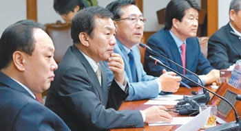 開城(ケソン)工業団地入居企業協会の歴代会長団が8日、緊急会合を開き、南北関係の悪化にもかかわらず、入居企業の経営活動は継続しなければならないという要旨の声明を発表している。左から、ペ・ヘドン・テソン産業代表、韓宰権(ハン・ジェグォン)開城工団入居企業協会長、金基文(キム・ギムン)中小企業中央会長、ムン・チャンソプ三徳通商代表、金学権(キム・ハククォン)ジェヨンソルテック代表。