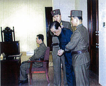 13日、北朝鮮の労働新聞は、前日(12日)に国家安全保衛部の特別軍事裁判に現れた張成沢(チャン・ソンテク)前国防委員会副委員長の姿を公開した。張氏は両手が縛られた状態で2人の安全保衛部員に首と腕をつかまれ、うつむいて立っている。特に左目上まぶたなど、顔の周辺にあざがあり、拷問や暴行を受けたと見える。