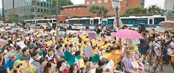 日本軍慰安婦問題の解決を求める第1138回定期水曜集会が6日午後、ソウル鍾路区(チョンノク)栗谷路(ユルゴクロ)2通りの駐韓日本大使館前で開かれた。先月30日と31日、慰安婦被害者女性と初めて面談した米ホワイトハウスが5日(現地時間)、慰安婦強制動員を「重大な人権違反」と論評するなど、慰安婦問題解決への関心が高まっている。