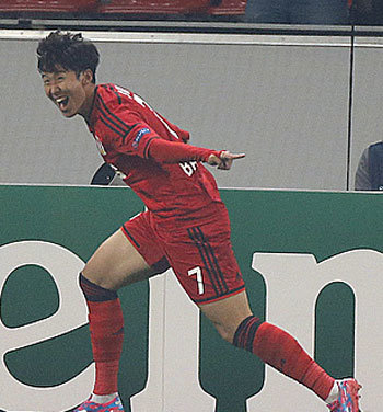 ドイツ・ブンデスリーガのレバークーゼンの孫興民が28日に行われたコペンハーゲン(デンマーク)とのURFAチャンピオンズリーグ予算プレーオフ第2戦で、試合開始69分で先制ゴールを決めた後歓呼しながら走り回っている。孫興民は第1戦で逆転決勝ゴールを決めたのに続き、この日も先制ゴールを決め、チームのチャンピオンズリーグ本大会進出を主導した。(レバークーゼン=AP・ニューシス)